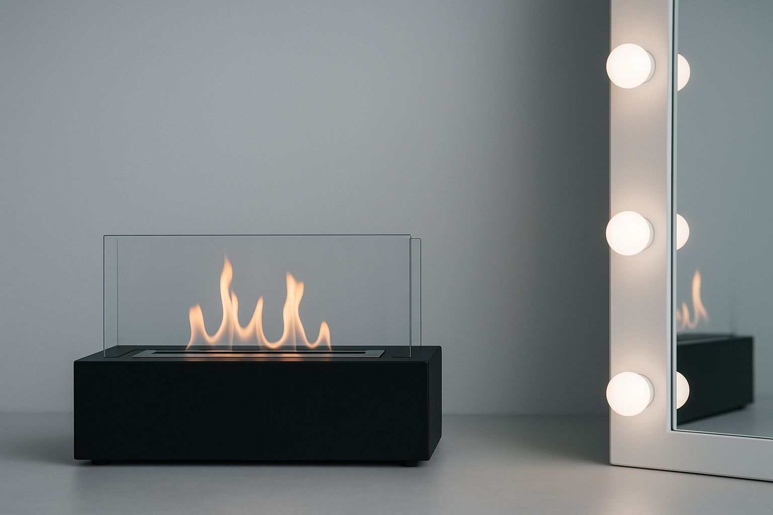 Integrating Hollywood mirrors with bioethanol fireplaces