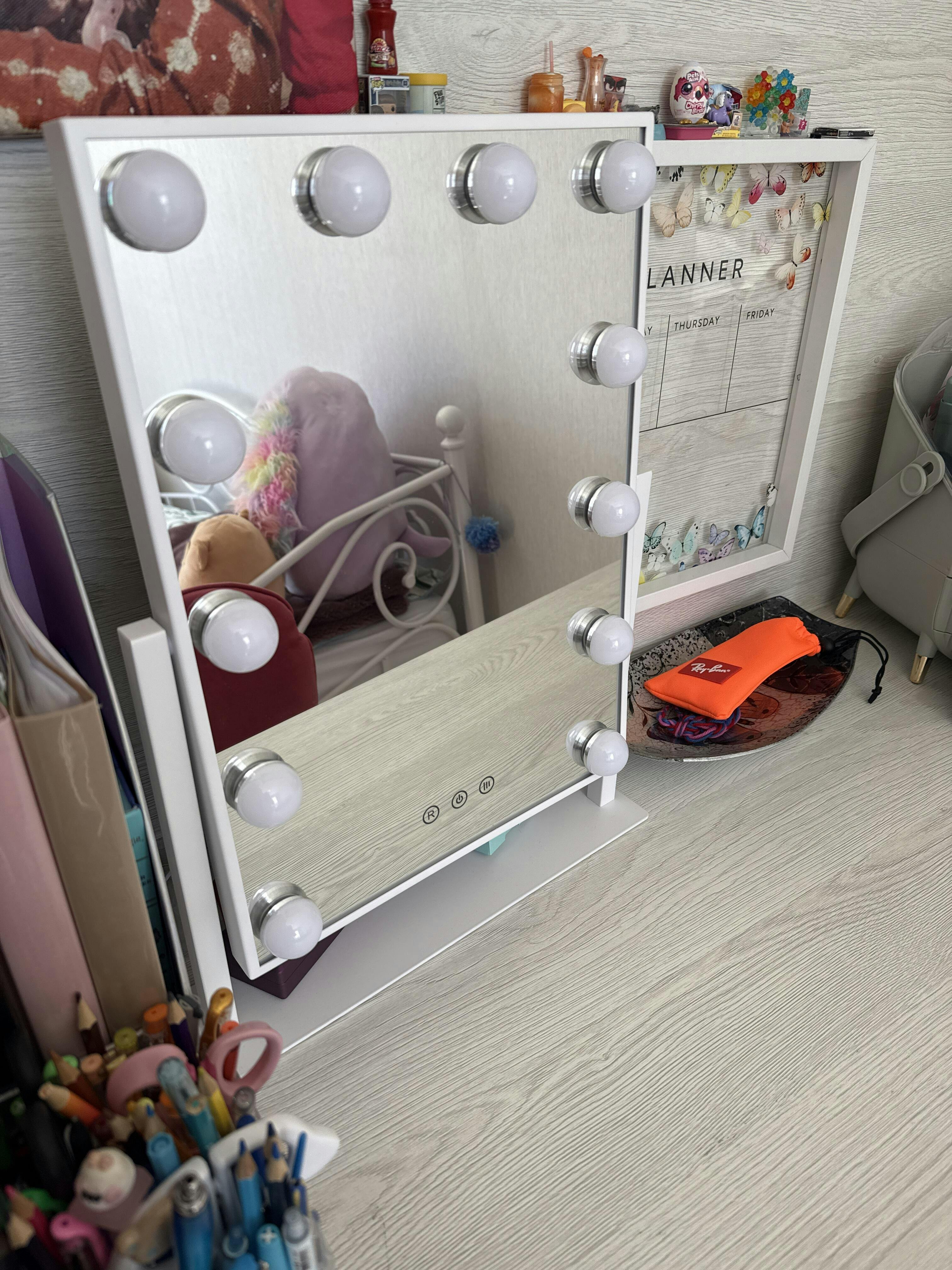 I have the Anne Round Mirror and it’s perfect for getting ready! With the 3 different light setting and dimmable features getting easy has never been so easy 🤍